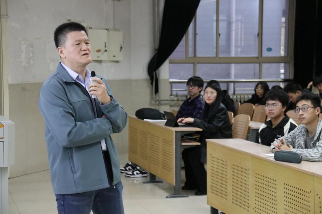 在结合求学、工作和成长经历基础上,吴新文高级工程师从专业领域、基础知识体系构建、未来工作领域与前景、专业技能培养与实践能力提升、行业发展动态与前沿技术以及学术道德与素养教育等6个层面,帮助学生树立了对专业发展前景的自信,阐述了学好专业课程的重要性,并勉励同学们一定要树立远大理想抱负。