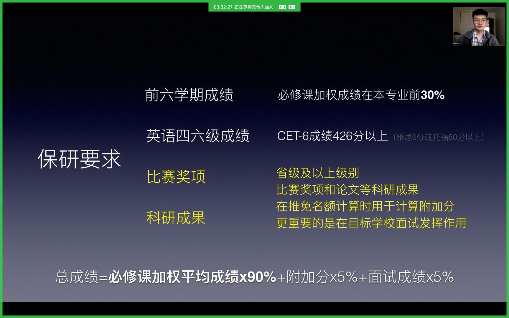 本次活动本着发挥朋辈效益,服务广大考研学子为目的,经过前期调研,根据专业设置和考研方向搭建三个线上直播平台,邀请了沈启辉等六位考取中国科学技术大学、山东大学、北京邮电大学等重点院校的2016级毕业生作为主讲人,分享备研考研路上的宝贵经验。六位同学从选取考研学校、专业方向、复习资料,安排复习进程、提高学习效率等方面向备考学生传经送宝。三场交流会气氛活跃,2017级学生积极向学长们咨询在考研过程中遇到的问题,主讲人结合自己的备考经验给予了耐心细致的解答。