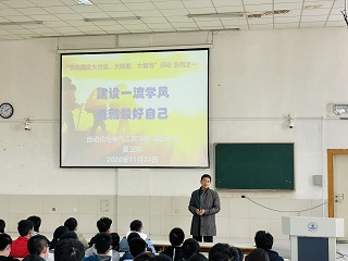 随后,学院党委书记夏卫东做了题为“建设一流学风,成就最好自己”主题报告。他从建设良好学风的重要性、青年大学生的社会责任、目标规划以及大一学习对于大学生活的重要性几个方面,系统的阐述了学风建设对于学校、学院以及学生个人成长的重要意义。他指出,要正确认识到大学学习与高中学习的一系列差异,并妥善积极应对一系列的巨大变化,主动调整状态,以最好的状态投入大学学习生活中。他强调,大学阶段,学习主要靠自觉和自律,学习成绩好坏也主要取决于个人态度。希望同学们养成良好的学习习惯,掌握合适的学习方式,学生将会更加积极应对大学生活,顺利成长成才!