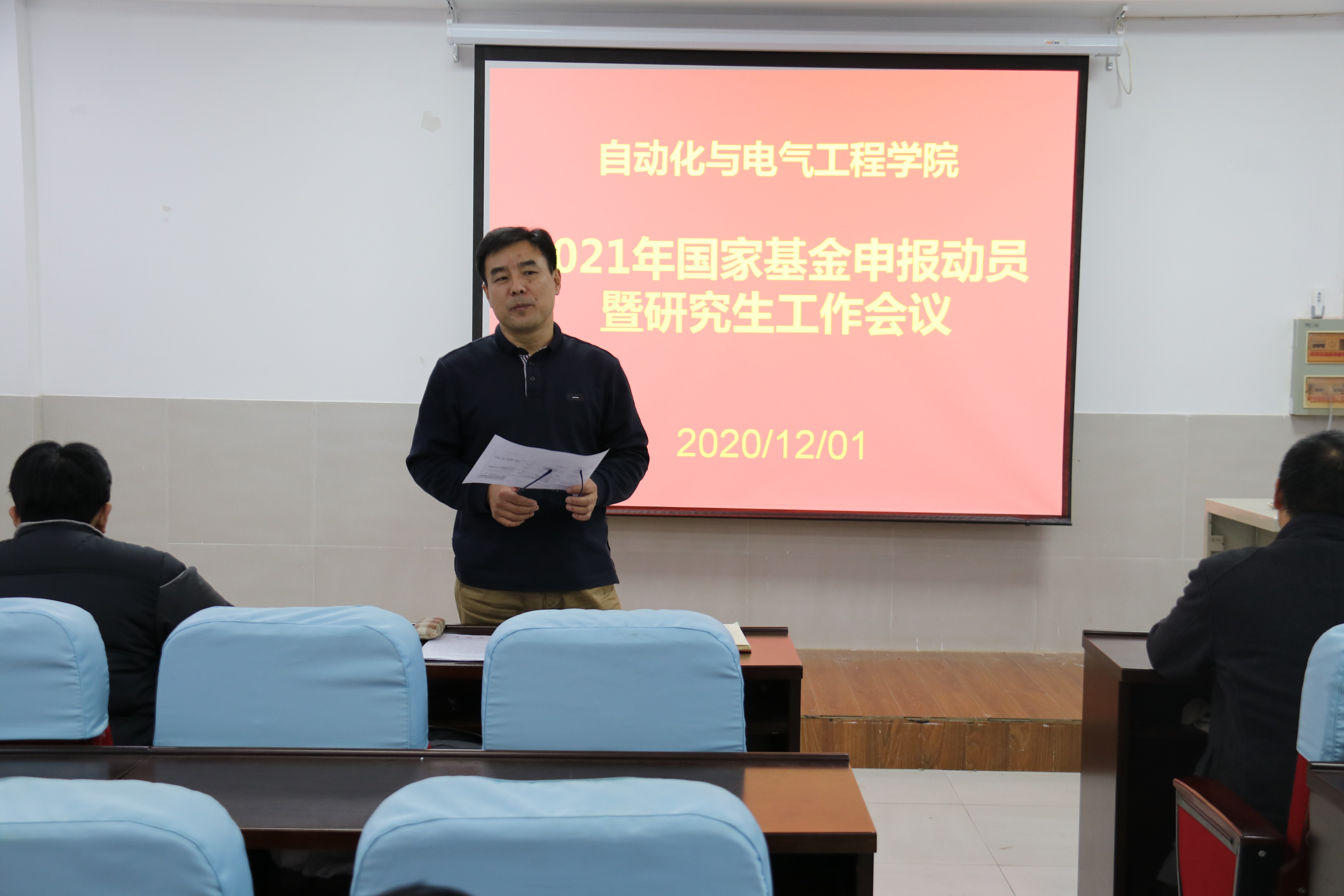 召开2021国基动员暨研究生工作会议。学院党委书记夏卫东,院长崔焕勇,副院长王中华、申涛,以及各系主任、全体研究生导师和所有具有博士学位的教师参加会议。