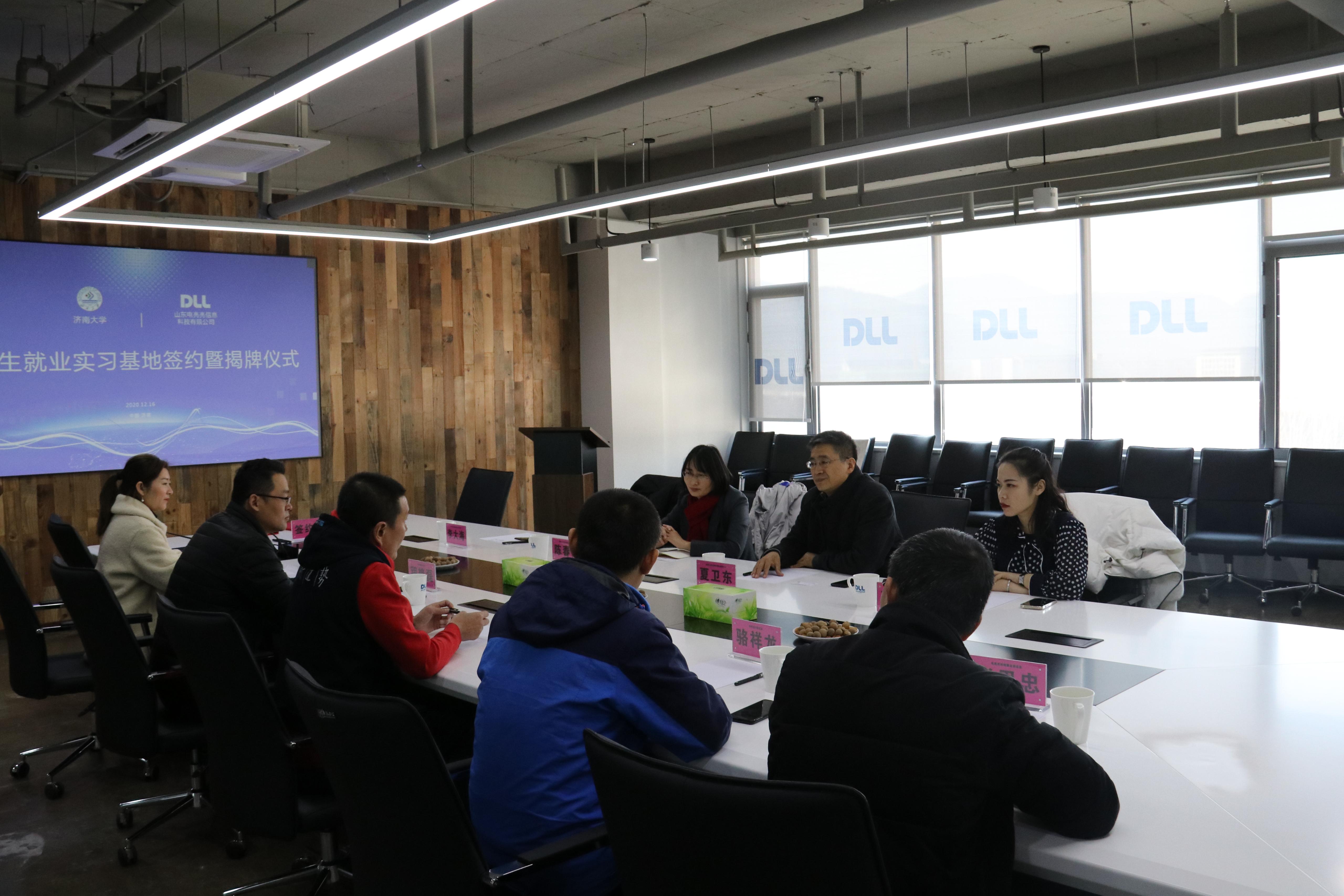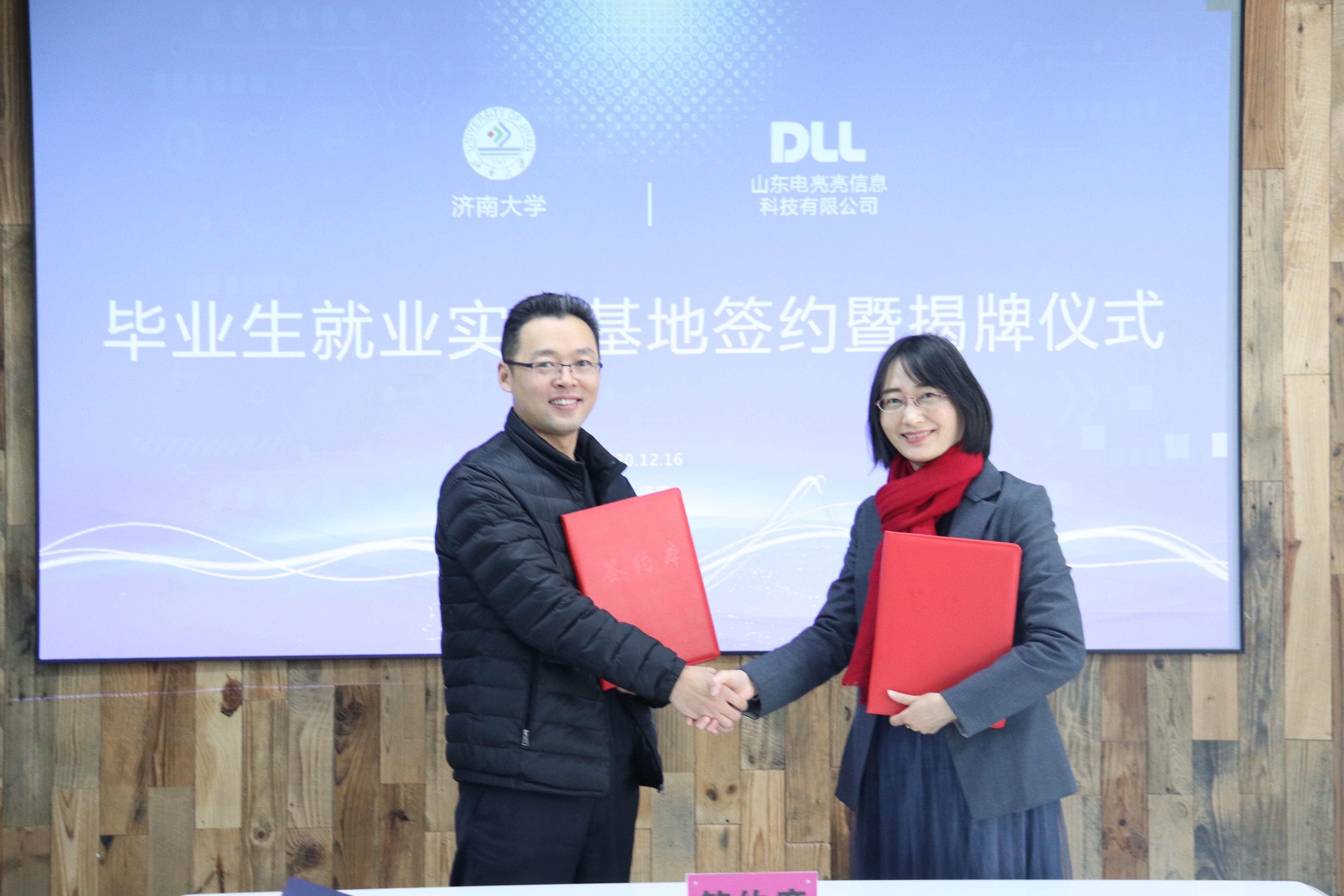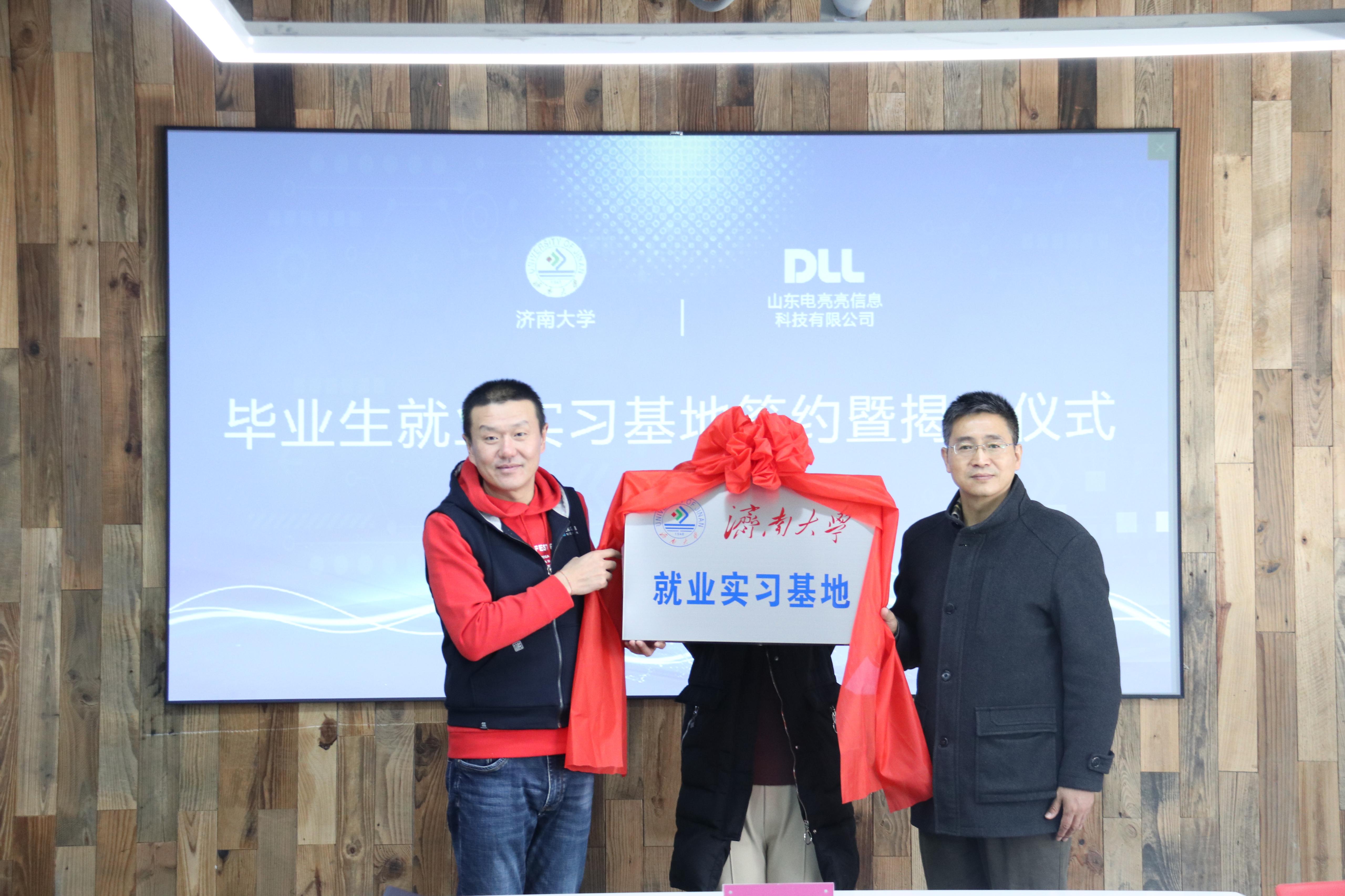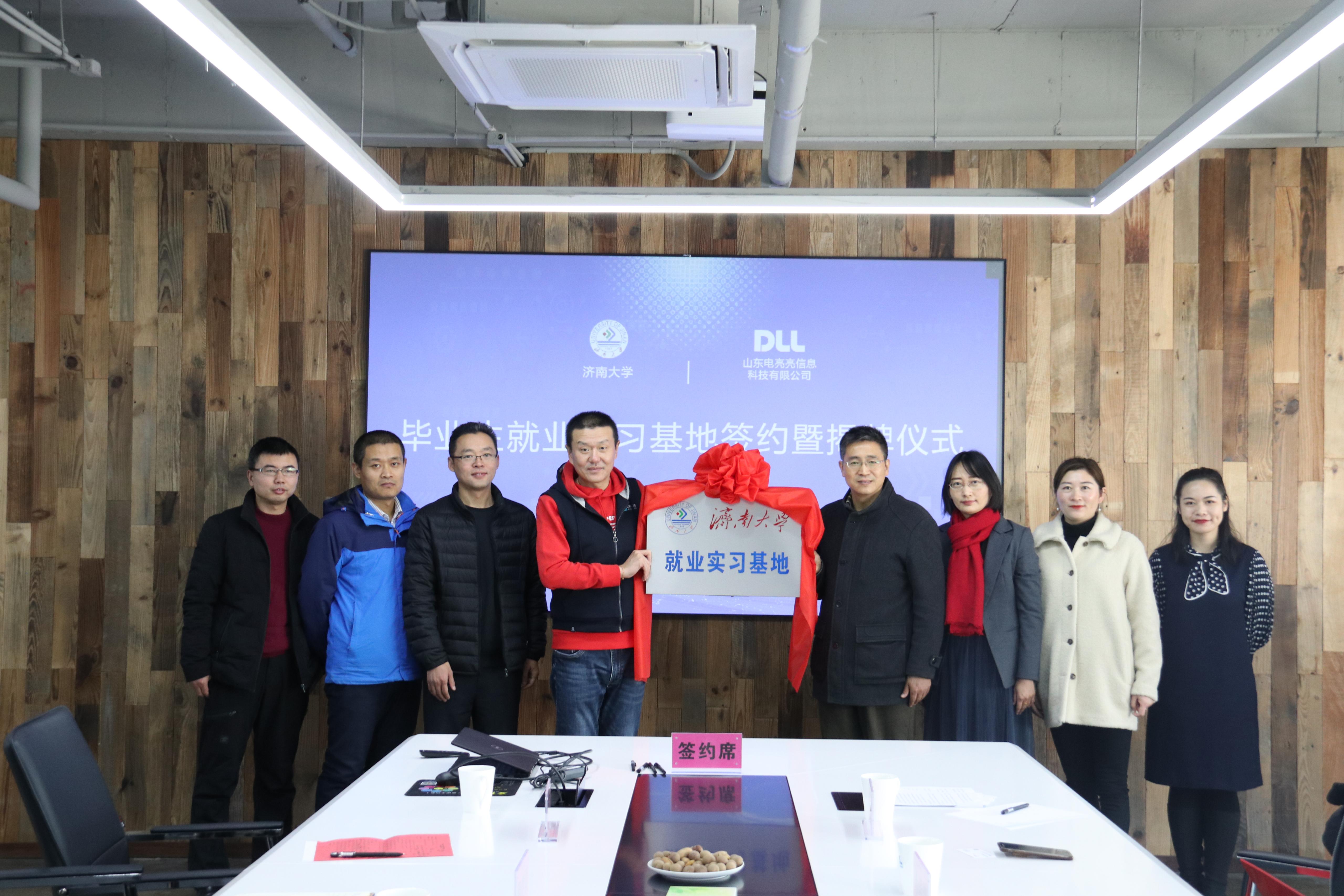 程艳磊副总经理与陈春锋副书记签署了济南大学就业实习基地框架协议书,邹旭董事长与夏卫东书记共同为济南大学本科生就业实习基地揭牌。