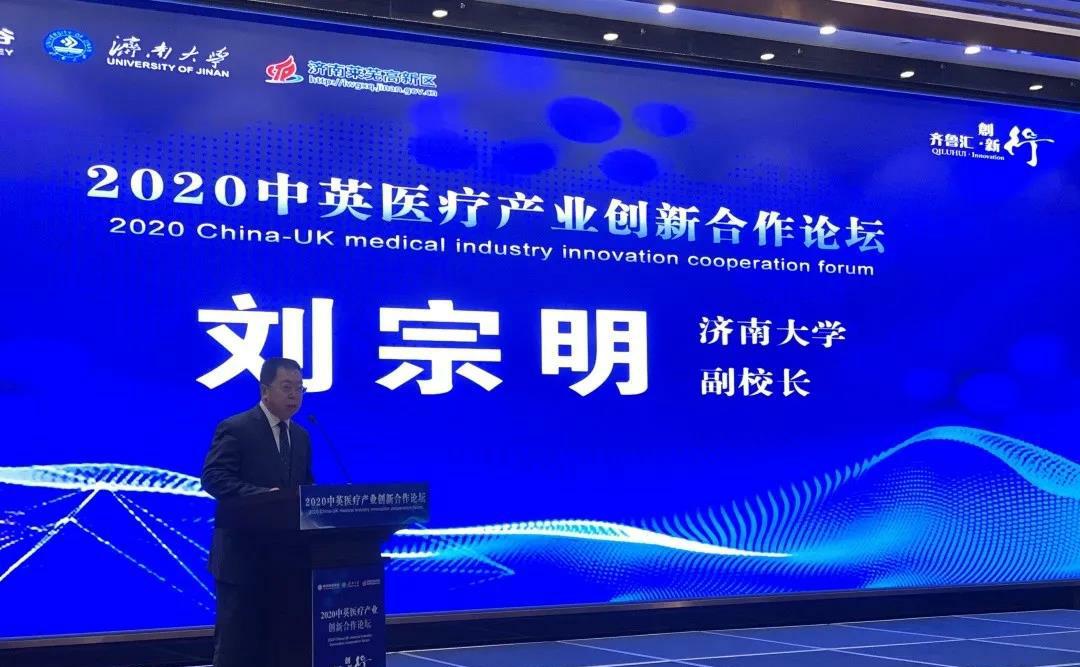 在论坛开幕式上,济南大学副校长刘宗明发表欢迎辞,他简单介绍了济南大学近年来发展的基本情况,表示济南大学坚持开放式办学理念,注重与地方政府、企事业单位的深层次合作,并与国外120余所高校建立校际合作关系,希望通过本次论坛发挥国内外高校在人才培养和科学研究、高新区在产业和政策、中关村在产教融合运作等方面的优势,携手同行,共同推动中英在高端医疗高端人才培养、技术交流与联合研发、科技成果落地转化等方面取得实质性成效。