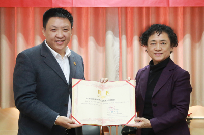 在仪式上,首先由济南大学党委副书记张硕秋为山东梅格彤天电气有限公司执行总裁谷青松颁发了顾问教授聘书。