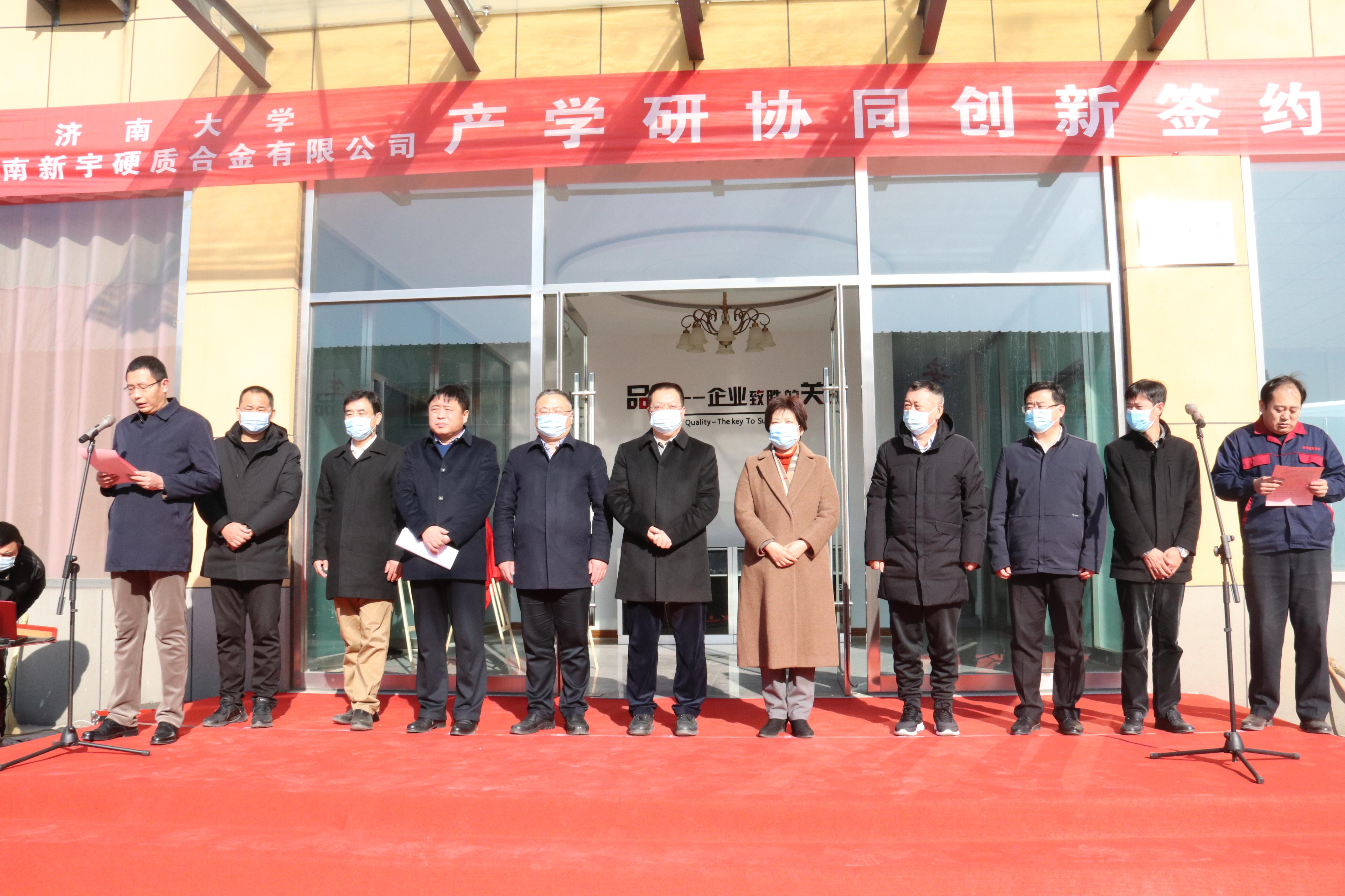 1月17日,济南大学与济南新宇硬质合金有限公司产学研协同创新签约仪式暨济南大学校友联络处授牌仪式举行。济南大学副校长刘宗明、章丘区人大常委会副主任程秋霞出席活动。章丘区组织部人才办、工信局、环卫局、科技局,济南大学科技处、科技成果转化办公室、合作发展处、校友工作办公室、电子赌博