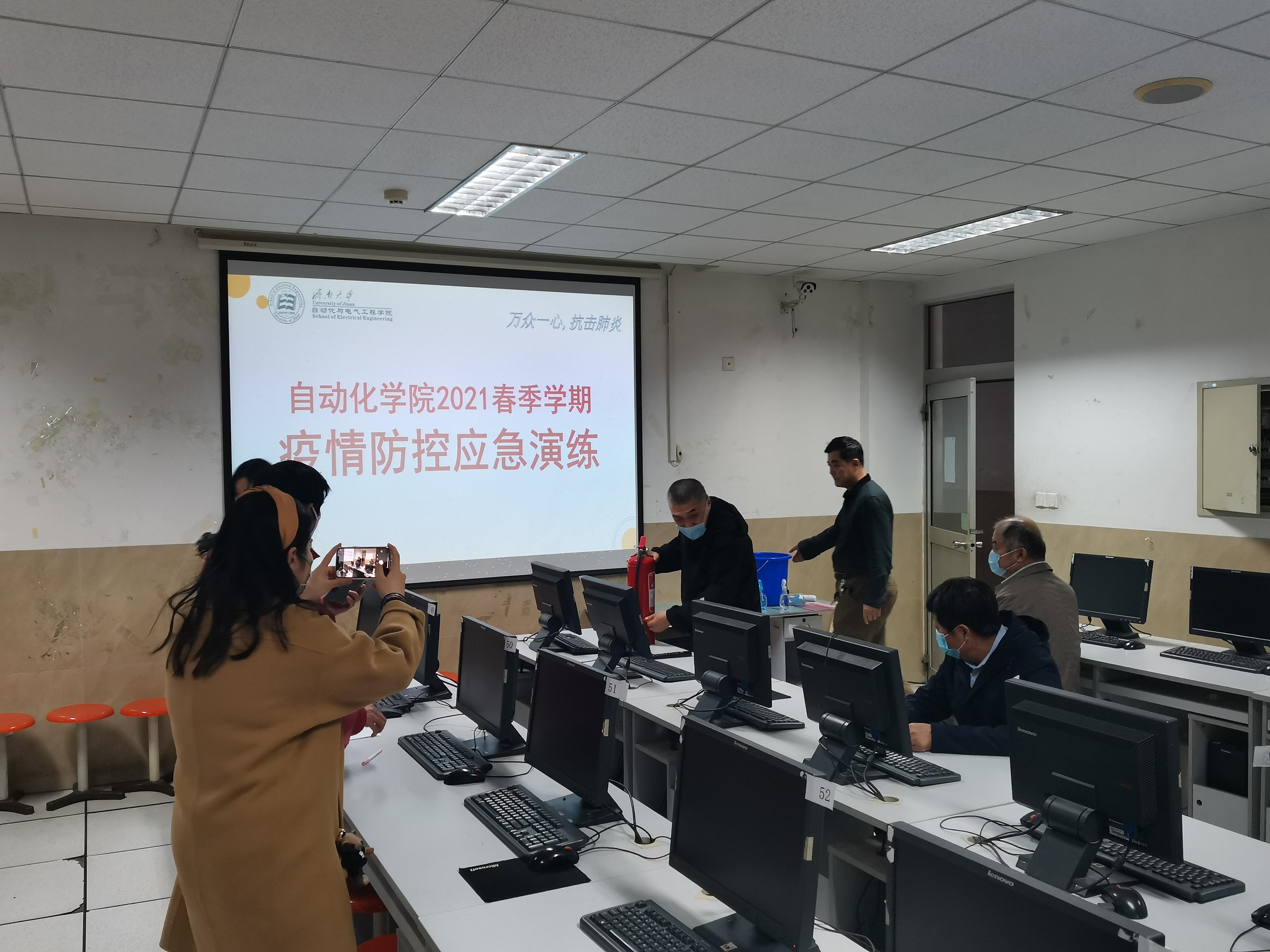 2021春季学期疫情防控应急演练在第1教学楼705实验室举行。学院领导班子成员、学院办公室、学工人员、实验室授课教师、全体实验室人员等参与并观摩了演练。党委副书记陈春峰主持本次演练并介绍了演练环节和主要内容。