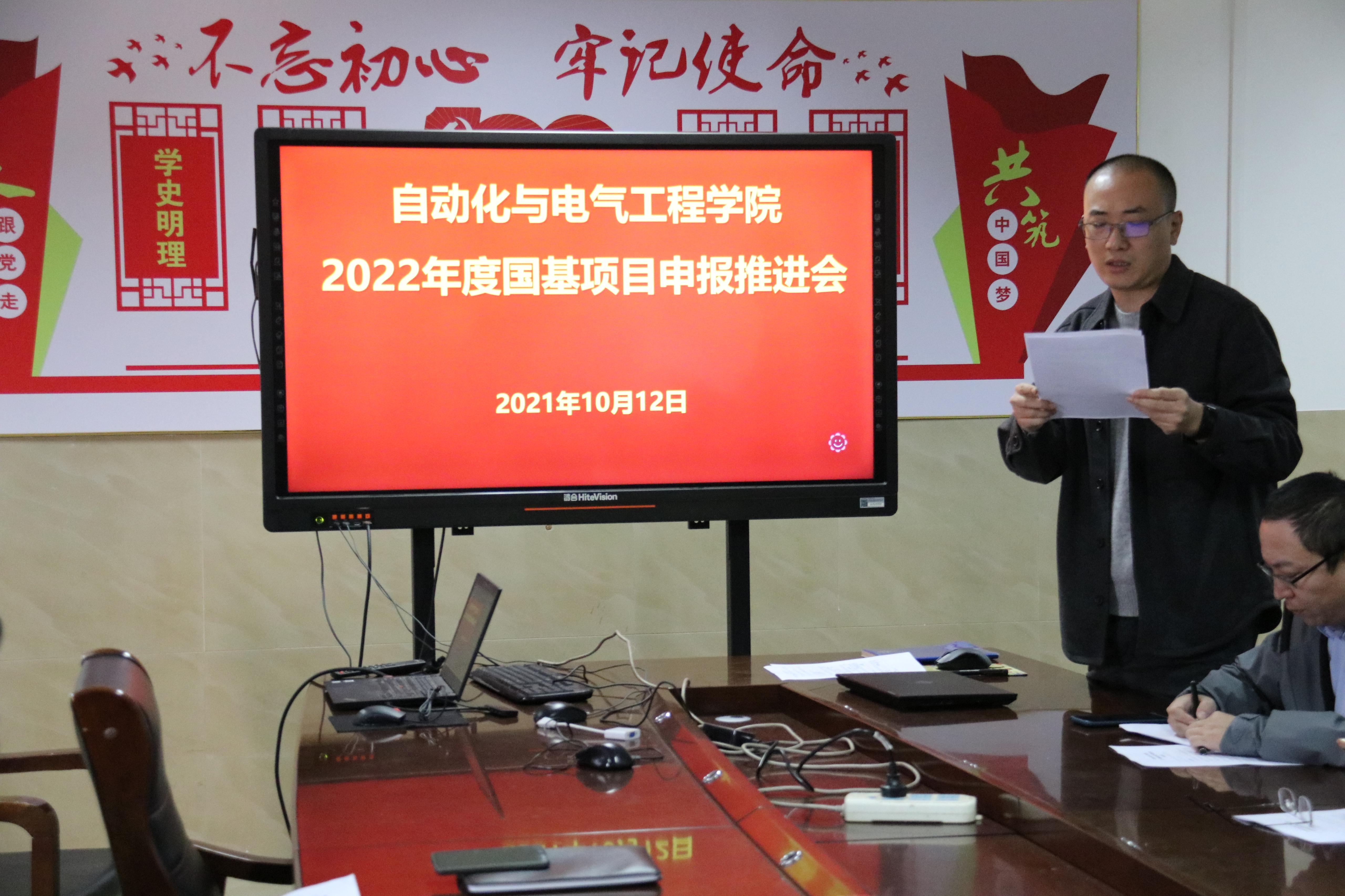 召开2022年度国家自然科学基金项目申报重点推进会。学院领导班子成员、各团队负责人和全体申报老师参加。