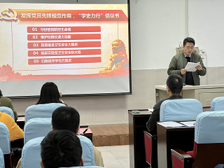 研究生第一党支部书记郭浩倡议全体研究生党员发挥党员先锋模范作用,从最困难的群众入手、从最突出的问题抓起、从最现实的利益出发,冲到一线,敢于担当,尽职尽责,用自身的行动带动身边的人向着正确的目标前进。号召全体研究生党员能够响应倡议书中的有关倡议,为学校、学院、班级贡献自己的力量。