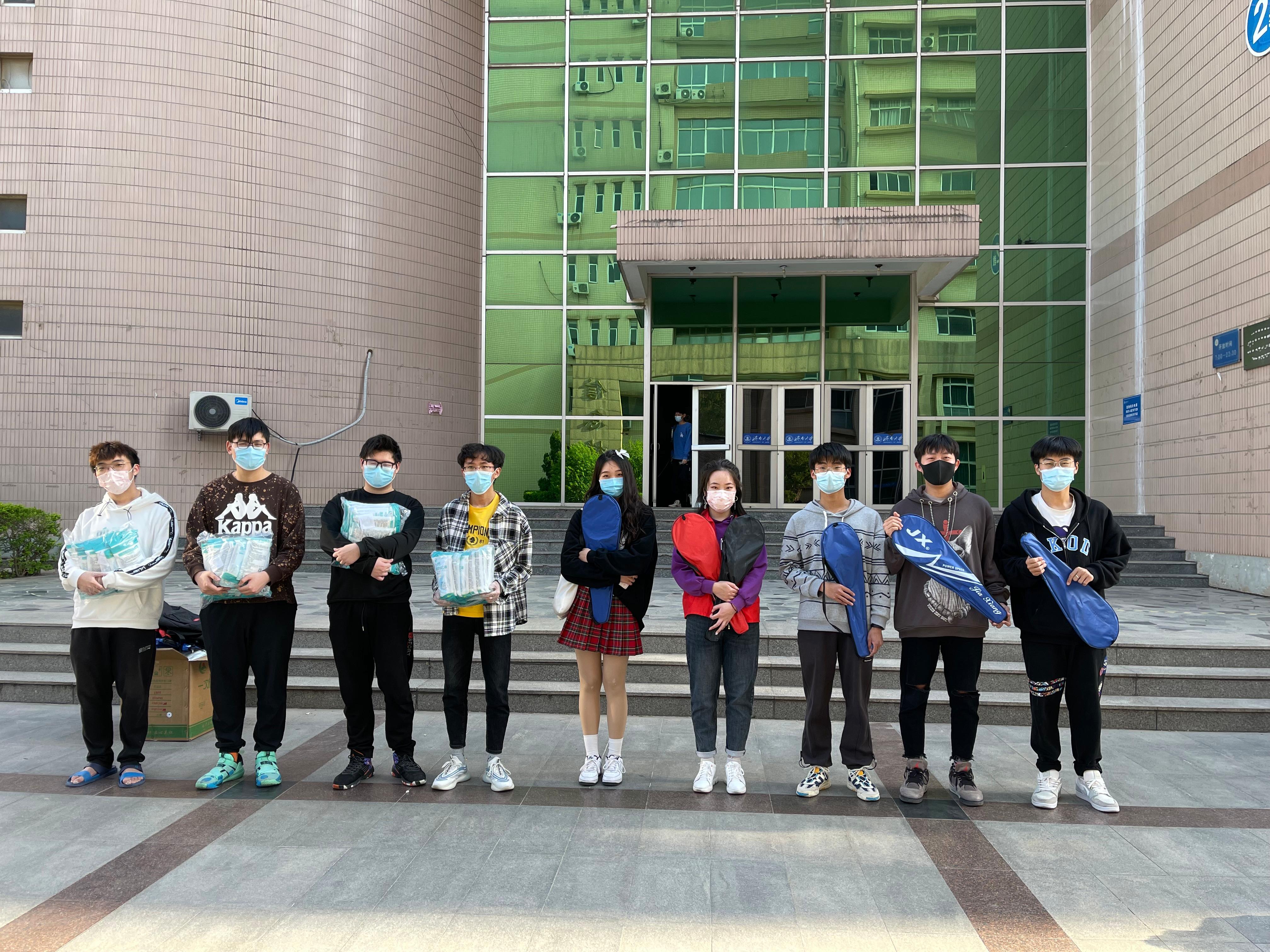 捐赠防疫物资和运动产品。捐赠仪式严格按照济南大学防疫要求,交接仪式采取校内校外无接触进行。