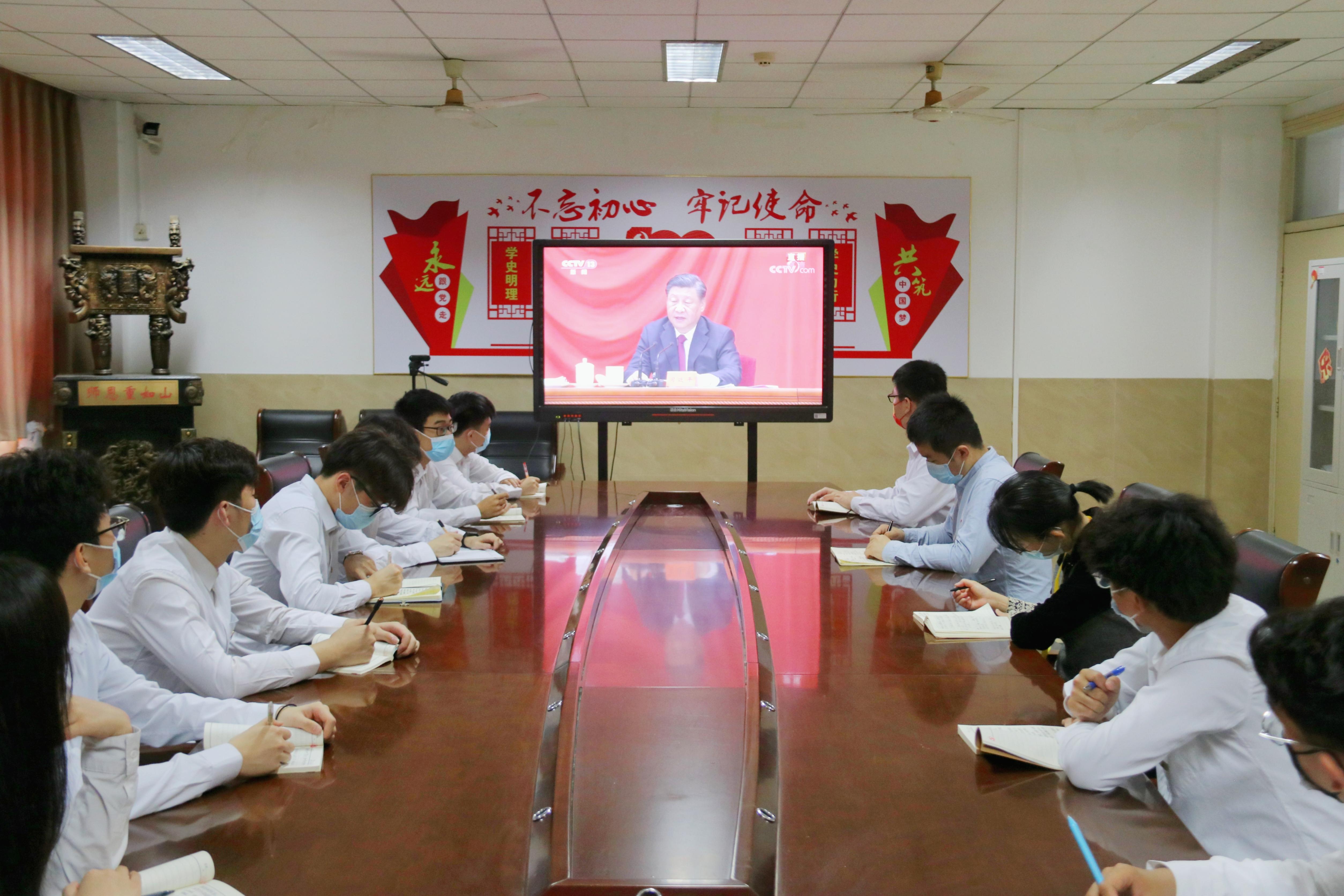 团委邀请学院领导、组织团员团干部、学生会组织工作人员、学生社团、青年学生代表等,在1教1108会议室,全程观看了庆祝中国共产主义青年团成立100周年大会实况直播。同时,学院各年级各班级,以集中收看和自主观看为主,收听收看实况直播。