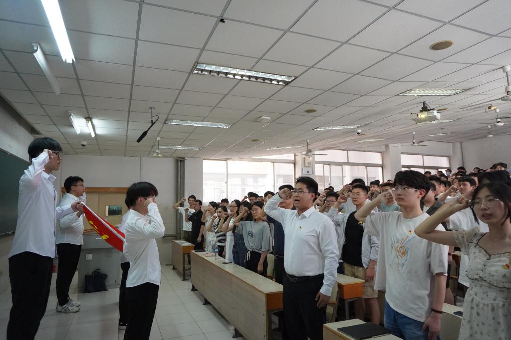 党委举办2023届毕业生“最后一堂党课”暨本学期新发展党员“入党第一课”活动,同时开展重温入党誓词主题党日活动。学院党委班子成员、全体学生支部委员会成员、兼职党支部书记、全体毕业生党员、本学期新发展党员近200人参加。