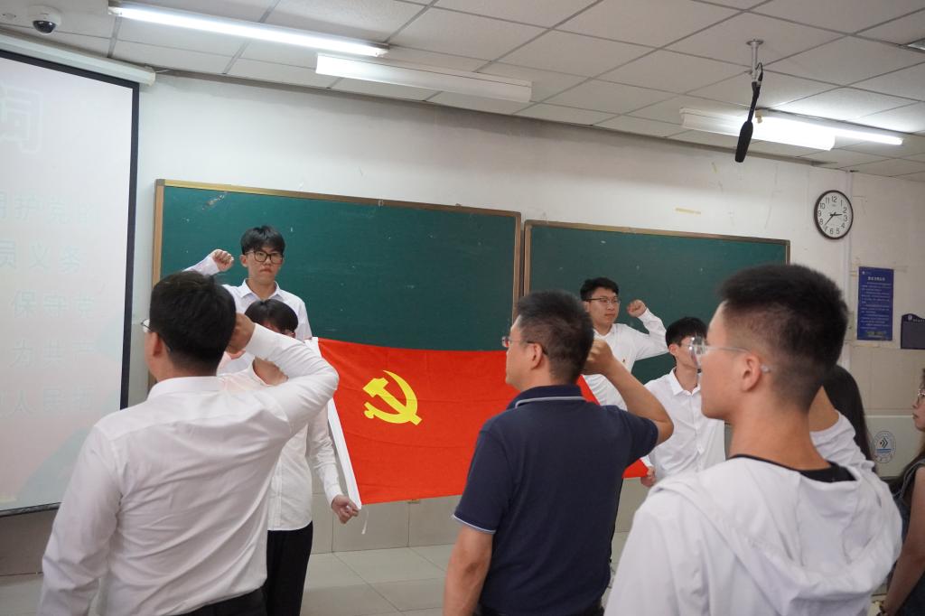 不忘来时路,奋进新征程。全体毕业生党员和新发展党员面向鲜红的党旗,举起右拳,庄严宣誓。铮铮誓言再次响彻教室上空。“我志愿加入中国共产党……随时准备为党和人民牺牲一切,永不叛党。”铿锵恢宏的誓词,强烈震撼激励着每一位党员,一字一句,神圣而豪迈,体现了党员们对党和人民的无限忠诚。
