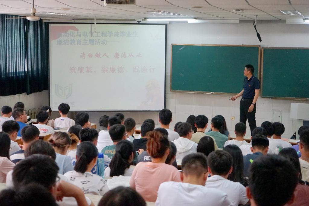 学院党委书记夏卫东首先以“不忘初心,牢记使命,做合格中国共产党党员”为题为大家讲授主题教育专题党课,并对毕业生开展廉洁教育。他强调,新时代青年党员要有担当和情怀,永远听党话、跟党走,叮嘱毕业生党员一是要时刻牢记入党初心,一朝入党,永远在党,严格要求自己,自觉学习贯彻习近平新时代中国特色社会主义思想,树立强国之志,涵养为民情怀,让个人梦想与党和国家发展建设同频共振,立志做有理想、敢担当、能吃苦、肯奋斗的新时代好青年,让青春在全面建设社会主义现代化国家的火热实践中绽放绚丽之花。二是要努力提升职业素养,传承“三实一强”作风,苦炼专业技能,发扬“不待扬鞭自奋蹄”的奋斗精神,为职业生涯发展做好充分准备,在各方面自觉发挥党员先锋模范作用;三是要堂堂正正做人,踏踏实实做事,守住政治关、权力关、交往关、生活关、亲情关,算好人生七笔账,慎始善终,清白做人,廉洁从业,为党和人民事业拼搏奉献,在新时代新征程上留下无悔的奋斗足迹。