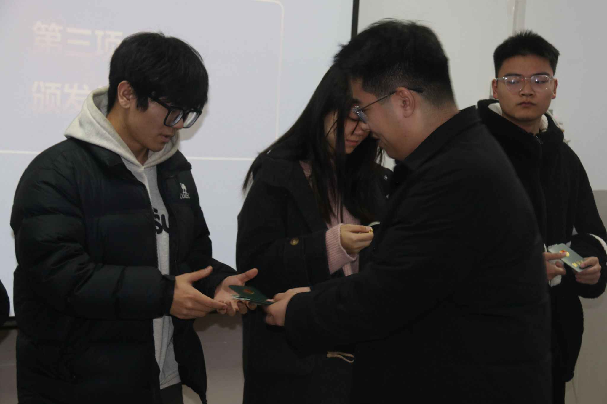 随后会议主持人宣读了新团员名单,并由王璞老师为新团员佩戴团徽。新团员们在团旗下庄严宣誓,承诺将遵守团的章程,执行团的决议,履行团员义务,严守团的纪律,勤奋学习,积极工作,吃苦在前,享受在后,为共产主义事业而奋斗。