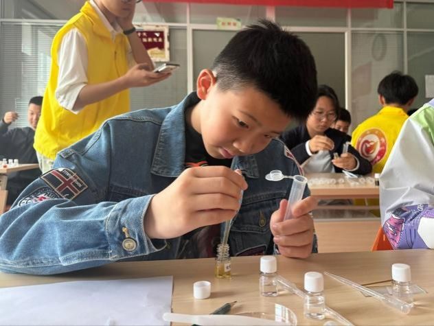 随着王老师宣布实验正式开始,现场迅速进入紧张而有序的动手操作环节。在“光合作用产生氧气”实验区域,当同学们亲眼目睹植物通过光合作用释放的氧气成功使带火星的木条复燃时,惊叹声此起彼伏;在“探究馒头在口腔中的变化”实验台前,大家通过“为什么馒头越嚼越甜”这一有趣问题切入,借助实验清晰了解到唾液对淀粉的消化分解作用;观察胆汁对脂肪的乳化作用实验中,食用油在乳化液里呈现出独特状态,让同学们直观领悟到胆汁的作用奥秘;而在“比较不同果蔬中维生素C的含量”实验中,同学们专注地向高锰酸钾溶液逐滴加入不同果蔬汁,见证溶液褪色的神奇过程,通过“需要12滴橘子汁才能让高锰酸钾溶液褪色”等现象,得出橘子汁中维生素C含量多于柠檬的结论。