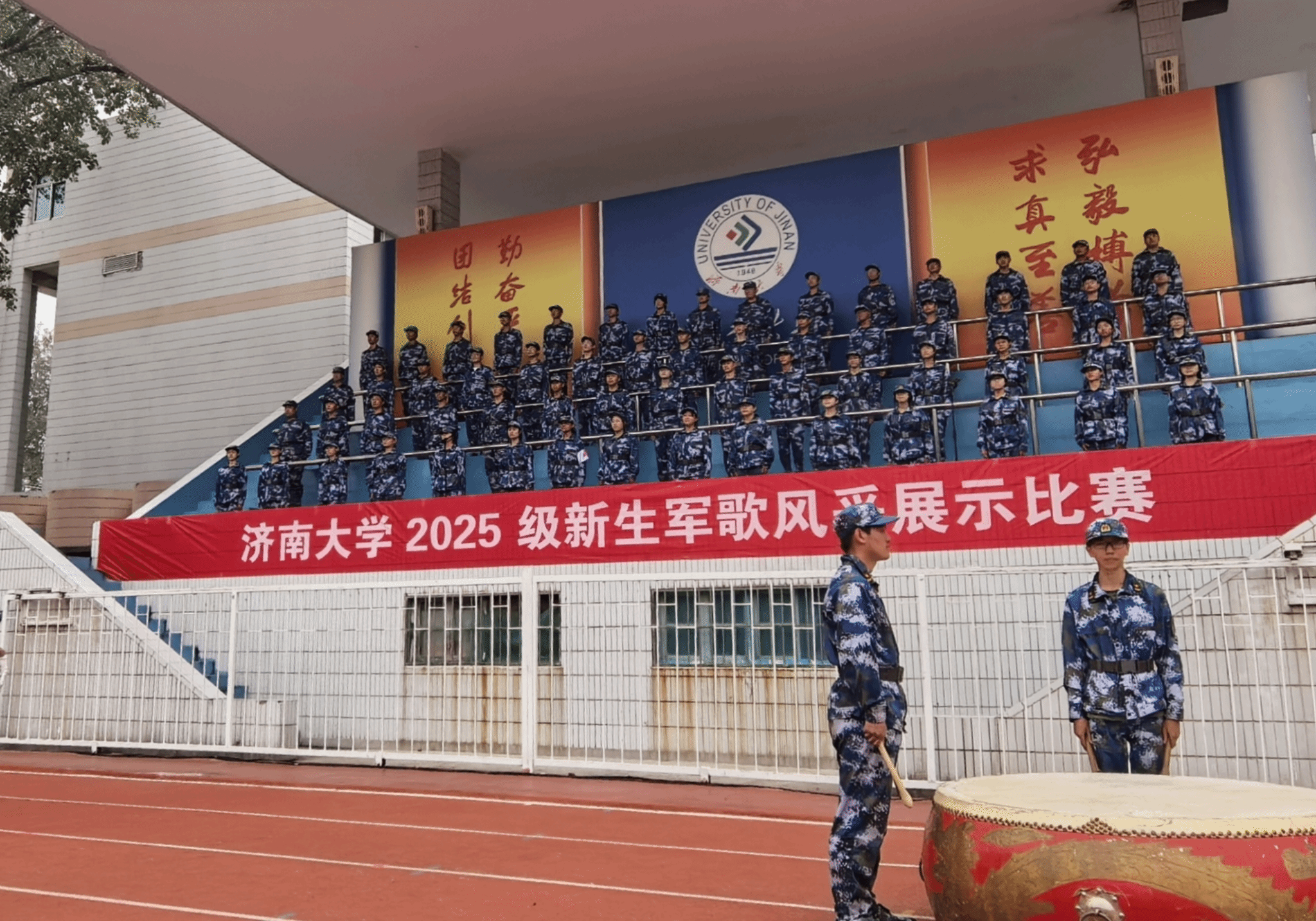 为传承红色基因、凝聚军训力量,9月28日,济南大学举办2025级新生军训拉歌比赛,电子竞技博彩平台