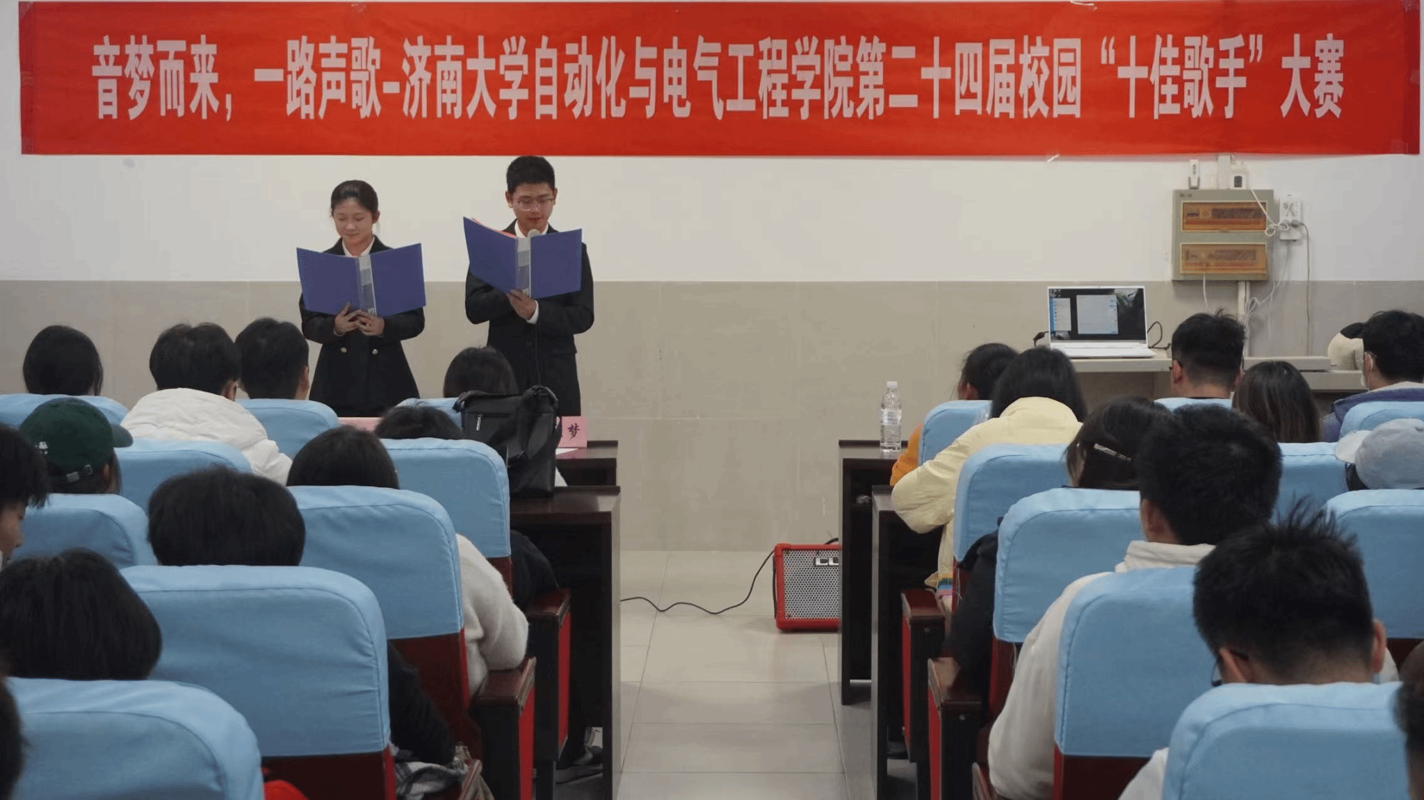 第二十四届校园“十佳歌手”大赛在第一教学楼地下报告厅温情开唱。本次大赛以“音梦而来,一路生歌”为主题,为怀揣音乐梦想的学子搭建展示才华的舞台,选手们用最真挚的歌声,为现场同学们呈现了一场兼具青春活力与艺术感染力的视听盛宴。