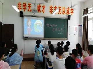 首先我们通过挨家挨户进行采访和发放手册的形式进行宣传,帮助学生和家长了解防溺水的相关知识和如何正确对溺水人群进行施救。通过调查了解得知,本地附近有一个较深的水库,往往假期会有一些比较调皮的孩子偷偷钻进铁丝网狭缝去钓鱼或者玩水,甚至曾发生过孩子不慎落水的事件,幸运的是恰好有路人经过及时将孩子救下才未酿成惨剧,然而即便如此,仍旧有孩子不管不顾,心存侥幸常偷跑去玩耍。对此,有部分家长不甚在意,而有的家长则是头疼不已。为提高宣传效率,在当地相关人员的帮助下,我们使用了学校里的一间教室集中进行宣讲,并且在教室上方拉了横幅以便提高注意力,通过本次防溺水知识安全教育宣讲,提高了学生们的防溺水安全意识和自我预防能力。