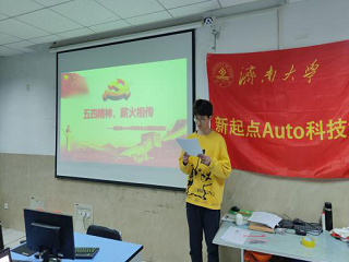 为更好的学习与发扬五四精神,加强对协会主要团干部的思想道德建设,在新时期更好地为建设社会主义贡献青春力量,传承自强不息的五四精神,5月6日,济南大学新起点Auto科技协会特于第一教学楼712教室举办此次“五四精神,薪火相传”主题团日活动。