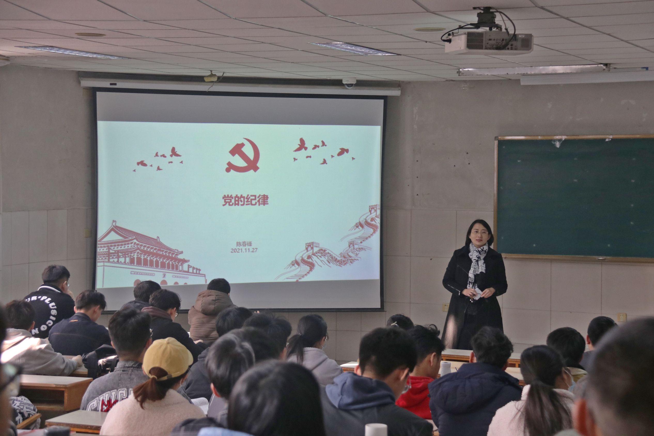 党委副书记陈春锋在第二教学楼开展培训,主题是党的纪律和学习贯彻十九届六中全会精神。
