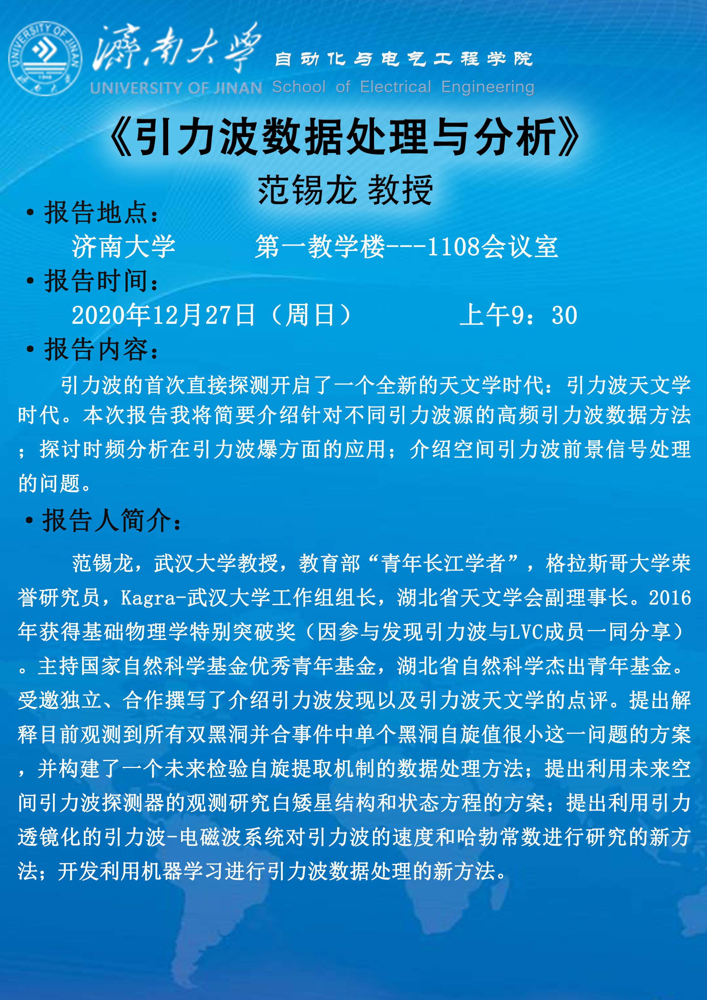 学术讲座:引力波数据处理与分析