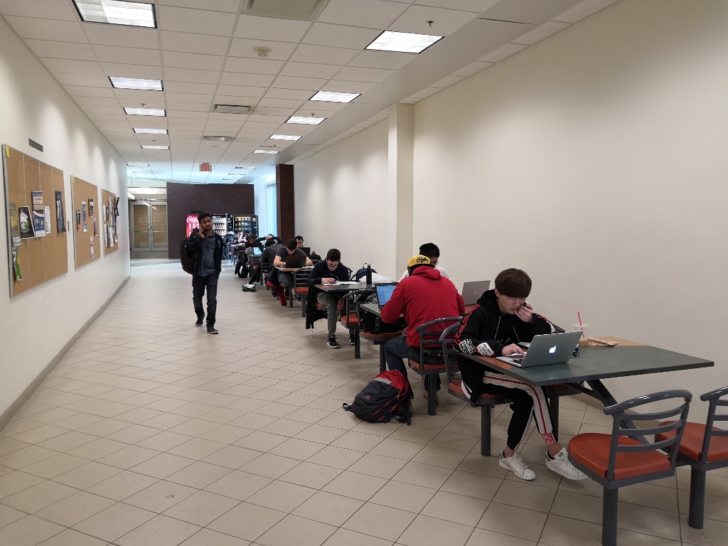 Fig.9 校园的餐厅、走廊经常能见到学生在一起讨论完成作业的场景