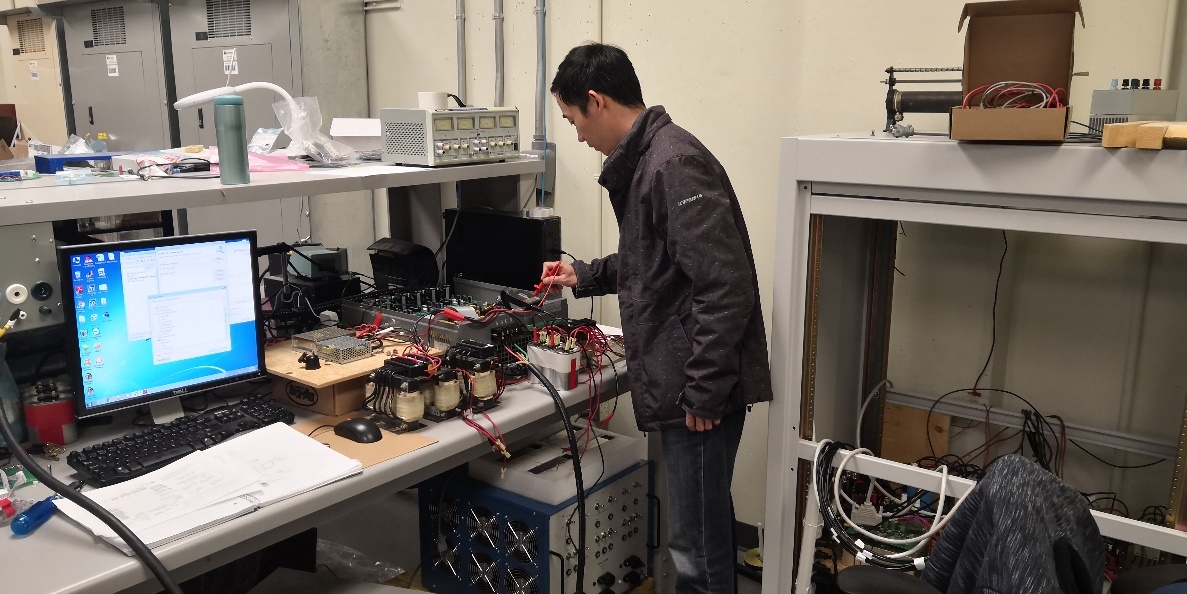 李老师在电力电子实验室为每个人准备了一个实验台,并配备了实验所需的基础仪器和设备。每位研究生和博士生根据自己研究的不同,购置相应的设备和材料,搭建自己的实验平台。这里说实话,很多时候他们并没有我们想象的特别先进的设备,多是根据自己的研究方向对常规设备的改造,并通过方法和手段创新,取得了一系列成果。虽然进入实验室的学生不需要签到,也没有实验管理员监督,但实验室整洁有序,所有学生都非常安静,讨论问题声音也很小,并且非常珍惜所用的实验设备和实验环境。这体现了学生的综合素质和对实验研究的热情。
