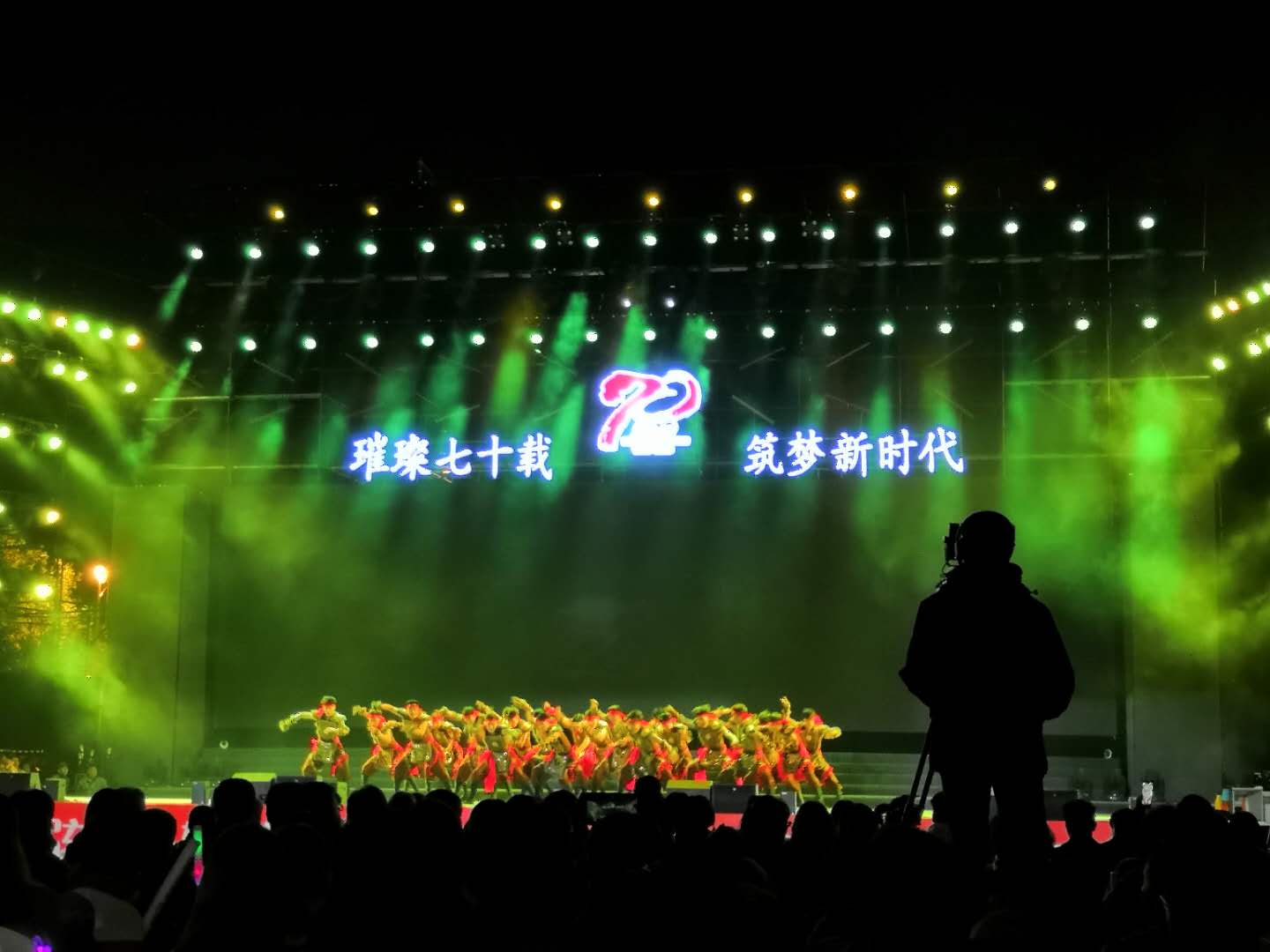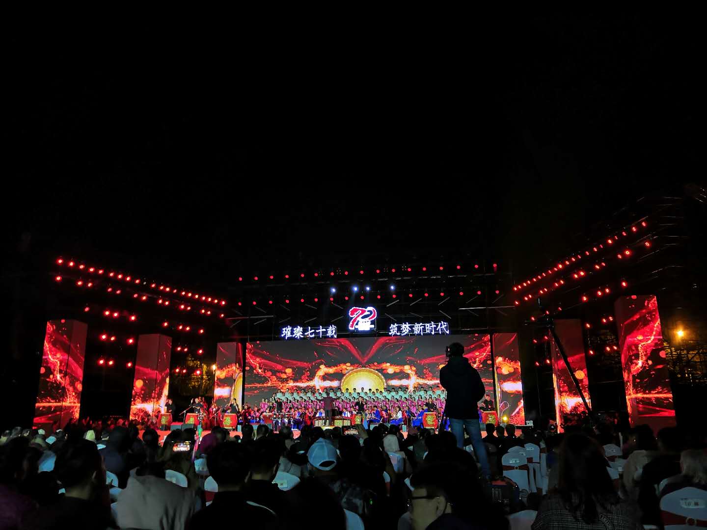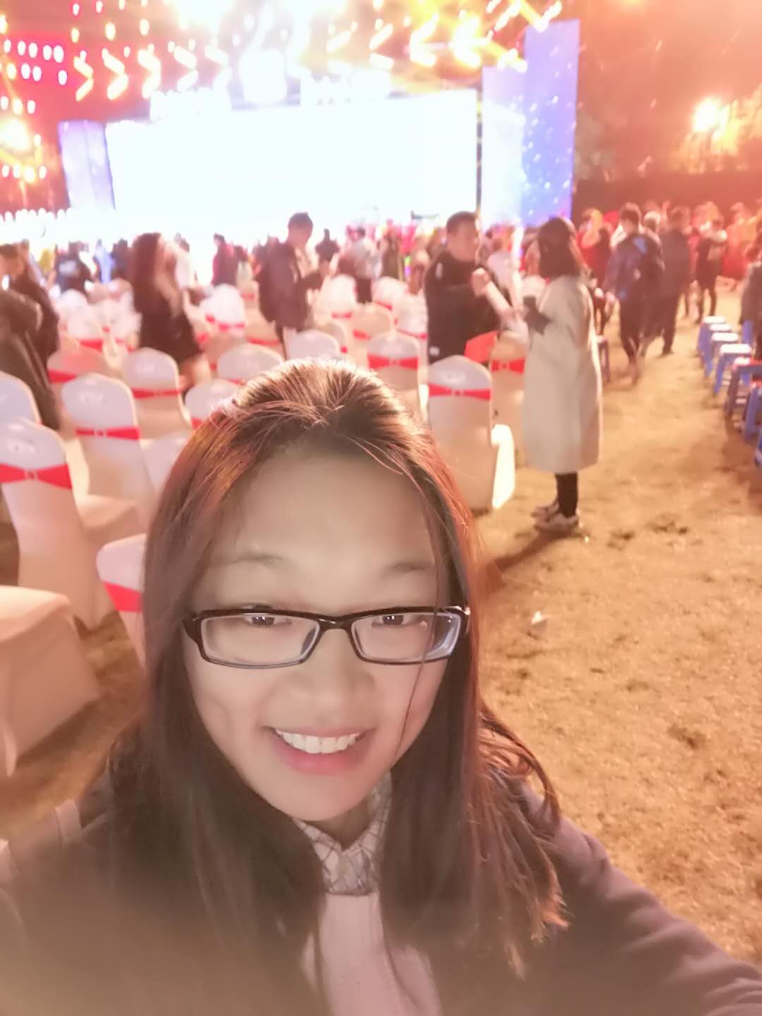 熟悉的操场,熟悉的校歌,我来到席位,看见舞台,像孩子一样开心地跳起来。每一个席位上都精心准备着节目单和银光棒,感觉自己像是参加某个明星的演唱会似的,激动不已,并且在结束之后我像宝贝一样全部好好地装进包里背了回来。我们在台下穿着毛衣,却看着台上音乐表演者都是露着后背在尽力表演,并且时刻保持微笑,我非常敬佩他们,并且每一个节目我都眼睛不眨地认真看不敢辜负表演者们的每一份用心。我能为母校送去的最好祝福就是尊重并点赞每一位为您生日劳累的工作人员,谢谢你们,节目真的很精彩。从小听唱唐磊老师的《丁香花》,这一次终于能在现场听到本人的歌声了,谢谢唐磊老师,谢谢母校。