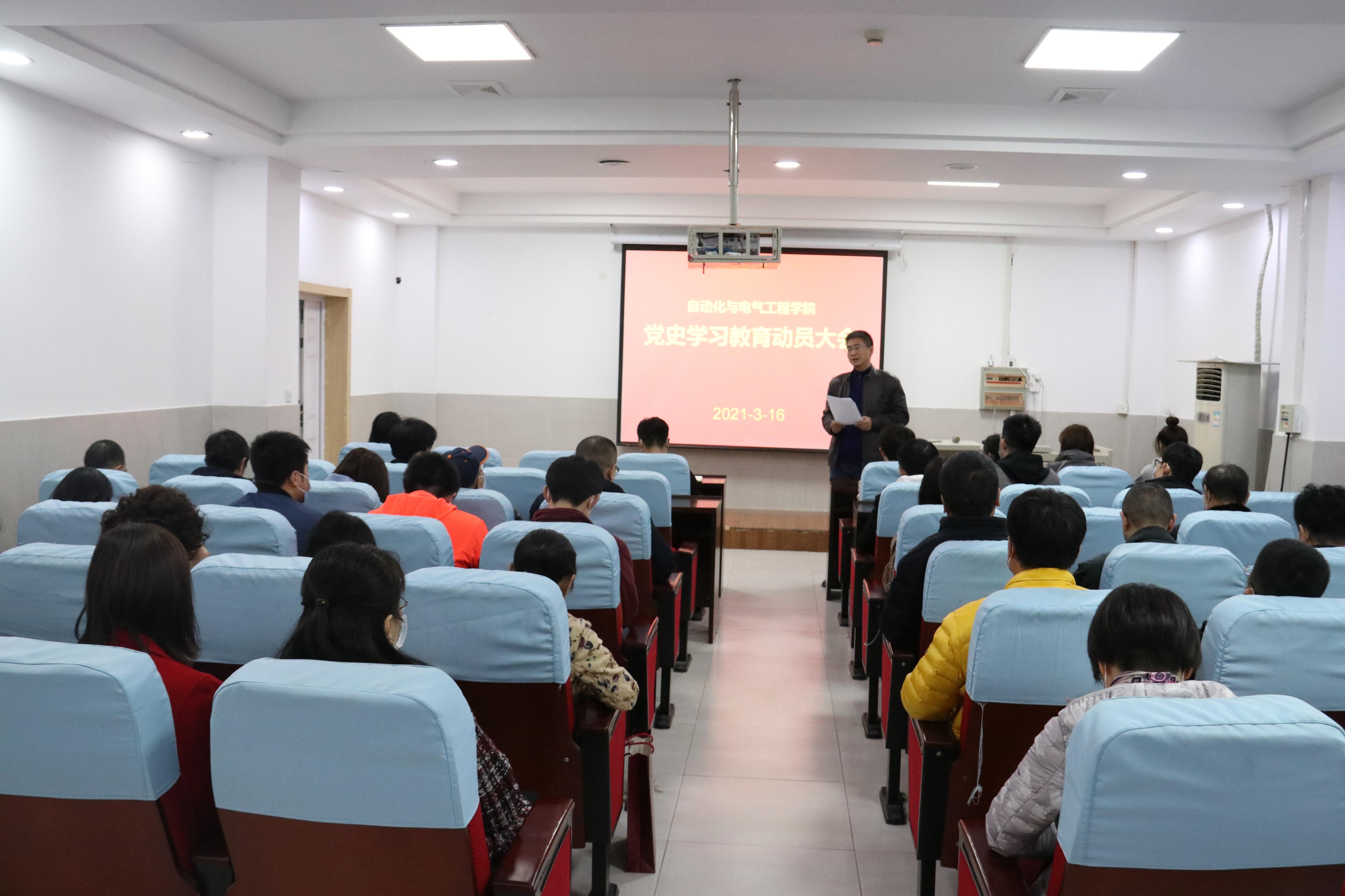 会上首先传达了习近平总书记在党史学习教育动员大会上的讲话精神和学校党委书记徐景颜同志在学校党史学习教育动员大会上的讲话精神。指出,在全党开展党史学习教育,是党中央立足党的百年历史新起点、统筹中华民族伟大复兴战略全局和世界百年未有之大变局、为动员全党全国满怀信心投身全面建设社会主义现代化国家而作出的重大决策,对于总结历史经验、认识历史规律、掌握历史主动,对于传承红色基因、牢记初心使命、坚持正确方向,对于深入学习领会习近平新时代中国特色社会主义思想,进一步统一思想、统一意志、统一行动,建设更加强大的马克思主义执政党,奋力夺取新时代中国特色社会主义伟大胜利,具有重大而深远的意义。强调开展好党史学习教育,是当前和今后一个时期学校和学院政治生活中的一件大事和首要政治任务,要坚持学习党史与学习新中国史、改革开放史、社会主义发展史相贯通,做到学史明理、学史增信、学史崇德、学史力行,引导广大党员、干部增强“四个意识”、坚定“四个自信”、做到“两个维护”,不断提高政治判断力、政治领悟力、政治执行力。